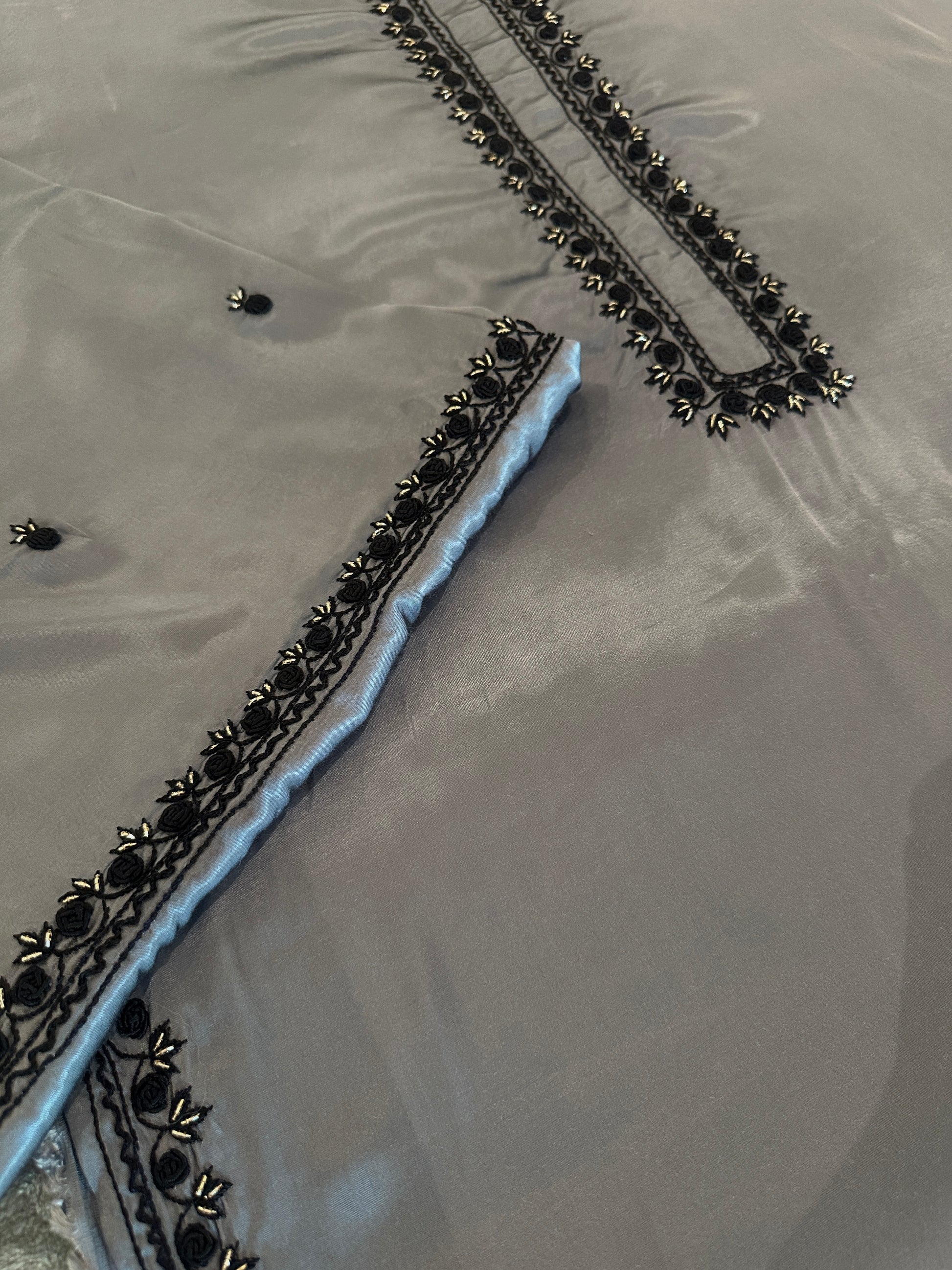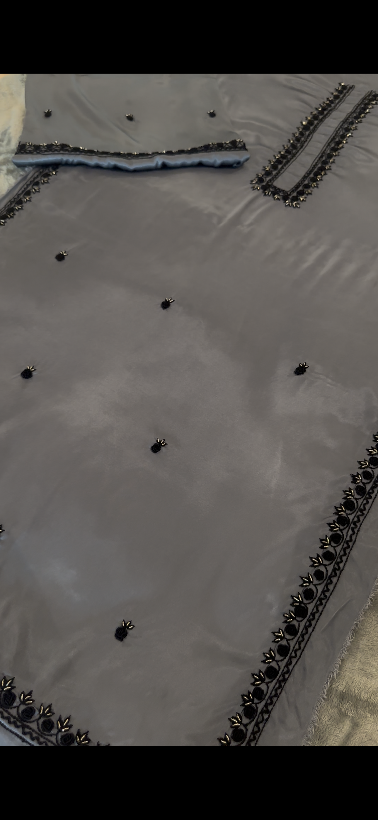 *Embroidery on neckline, sleeves, and all 3 borders of the shirt - paired with a plain trouser